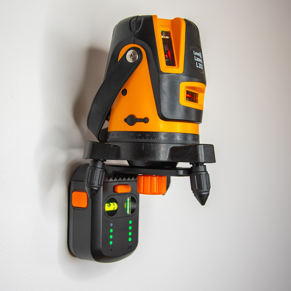 The Suction Mount has two sets of LED lights: one for battery level and the other for suction quality. The cleaner and less porous the surface it is mounted to, the better and stronger the mount. There is no recommended laser mounting weight, as it all depends on the surface you are mounting on. However, from our experience, most line lasers and even some lighter rotating lasers can be safely used with this device. Make sure you regularly check the battery level and have a dust-free area on the wall you are mounting to.