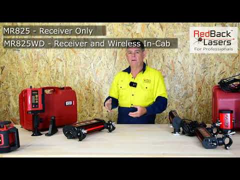 All RedBack machine receivers work with red-beam rotating lasers rated Class 2 or Class 3. They’re not compatible with green-beam lasers or line lasers. The MR825WD has a detection range of approximately 200m radius when paired with a Class 3 red-beam laser. See the Pair with a Laser section above for compatible options.